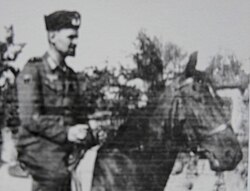 | Walter Lange als berittener Soldat bei den Kuban-Kosaken in Jugoslawien | Familienarchiv | Autor/-in unbekannt Unknown author | Datei:Walter Lange (Kosaken).jpg |