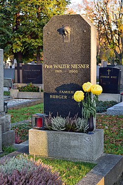 | Ehrenhalber gewidmetes Grab von Walter Niesner auf dem Wiener Zentralfriedhof | Eigenes Werk | Haeferl | Datei:Wiener Zentralfriedhof - Gruppe 88 - Grab von Walter Niesner.jpg |