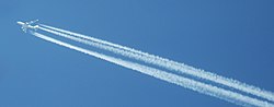 Dieses Bild zeigt die Kondensstreifen eines Vierstrahl-Jets und das Flugzeug selbst (Boeing 747). | Eigenes Werk | André Karwath aka Aka | Datei:Contrail with jet (aka).jpg | |