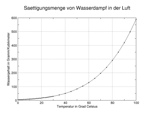 Eine Näherungsformel für die Berechnung des Sättigungsdampfdruckes in Abhängigkeit von der Temperatur ist die Magnus-Formel: