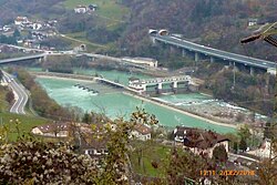 | fotografiert von Kaiserweg / Via Kaiser oberhalb von Kollmann / Colma | Eigenes Werk | Kurtblattmann | Datei:Wasserkraftwerk-Kardaun Wasser-Einlass bei Kollman Colma.jpg | |