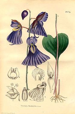 Lentibulariaceae - Utricularia humboldtii . From: Annales de la Société royale d'Agriculture et de Botanique de Gand, Journal d'horticulture by Charles Morren (ed.). Gent, Local de la Société (Casino), etc., 1845, volume 1 (plate 34). Hand-coloured lithograph (sheet 168 x 257 mm). Text enclosed. Belgian horticultural journal, published from 1845-1849 by the Royal Agricultural and Botanical Society of Gent, organizer of the famous flower shows in Gent, Gentse Floraliën, since 1809. Started and edited by Charles Morren at the same time as the more successful competitor Flore des serres et des jardins de l’Europe of the nurseryman Louis van Houtte. Great flower books p. 84; Nissen BBI 2212. Copyright expired due to age of image Originally uploaded to en.wikipedia.