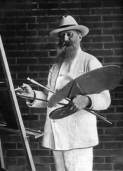 | 1902 portrait photograph of Vasily Vasilyevich Vereshchagin . Caption: "Vasili Vereshchagin - The famous Russian painter of battle scenes, who has been making the war of the United States in Cuba and in the Philippines the subject of his latest work. This portrait shows him in his Cuban working costume." | Google Books - (1902). " The March of Events ". The World's Work : p. 2473. New York: Doubleday, Page, and Company. | Frances Benjamin Johnston | Datei:Vasili Vereshchagin, 1902.jpg | |