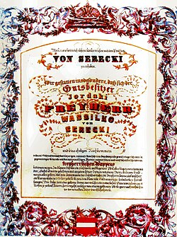 - ↑ Adelsbrief Graf Wassilko von Serecki