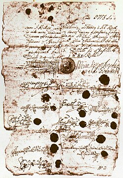 | Freistellungsurkunde von 4. November 1691 durch General Graf Jablonowski, Großhetman der Krone des Königreichs Polen | Familienarchiv Wassilko | Graf Stanisław Jan Jabłonowski, Großhetman der Krone des Königreichs Polen | Datei:Freistellungsurkunde vom 4. November 1691.jpg | |