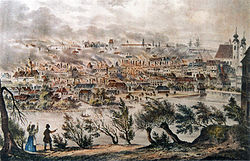 | Der große Brand in Steyrdorf 1842 | Stadtmuseum Steyr. (Scan aus: Hans Stögmüller — Josef Werndl und die Waffenfabrik in Steyr . Steyr: Ennsthaler 2010 S. 23 ISBN 978-3-85068-860-4 ) | Autor/-in unbekannt Unknown author | Datei:Brand in Steyr 1842.jpg | |