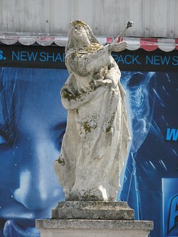 Wann das Kreuz durch die Statue ersetzt wurde, ist nicht mehr genau feststellbar.