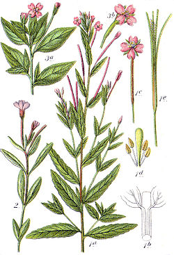 - Schmalblättriges Weidenröschen (Chamaenerion angustifolium (L.) Scop., Syn.: Epilobium angustifolium L., Chamerion angustifolium (L.) J.Holub)