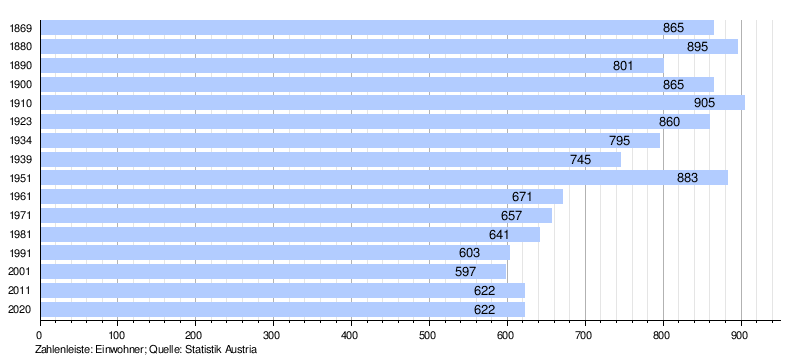 1991 hatte die Gemeinde laut Volkszählung 603 Einwohner, 2001 dann 597 Einwohner. Der Rückgang erfolgte trotz positiver Geburtenbilanz (+12), da die Wanderungsbilanz stärker negativ war (−18). Von 2001 bis 2011 nahm die Geburtenrate deutlich zu, sie konnte die Abwanderung ausgleichen, sodass die Bevölkerungszahl auf 622 Personen anstieg.[3]