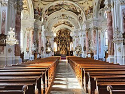Die 1775 fertiggestellte Kanzel stammt von dem Bildhauer Jakob Peyer. Von ihm sind auch die beiden Seitenaltäre. Sie sind der heiligen Anna und dem heiligen Josef gewidmet. Die großen Altarbilder stammen von Joseph Adam Ritter von Mölk.