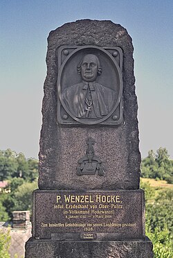 | Gedenkstein für de:Wenzel Hocke , katholischer Priester und seit 1779 Erzdechant in Politz. | Eigenes Werk | E. Wetzig | Datei:Wenzel Hocke Gedenktafel.jpg |