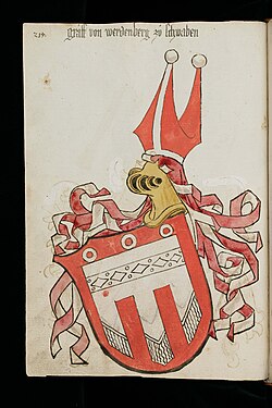 | Wappenbuch des St. Galler Abtes Ulrich Rösch; Stiftsbibliothek St. Gallen, Cod. sang. 1084 Wappen: von Werdenberg | http://www.e-codices.unifr.ch/de/csg/1084 | Autor/-in unbekannt Unknown author | Datei:Wappenbuch Rösch csg-1084 215.jpg | |