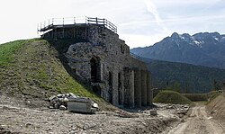 | Kehlseite des Werk Tenna im Trentino. Im Hintergrund ist die Außenmauer des Grabens erkennbar. | Eigenes Werk | Llorenzi | Datei:Forte Tenna5.jpg | |