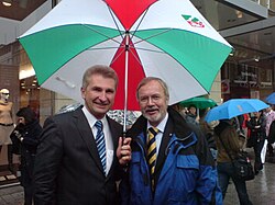 | Andreas Pinkwart , Minister für Innovation, Wissenschaft, Forschung und Technologie sowie Stellvertretender Ministerpräsident des Landes Nordrhein-Westfalen und Werner Hoyer , Bundestagsabgeordneter der FDP und Außenpolitischer Sprecher der FDP-Bundestagsfraktion | Eigenes Werk | Vinom | Datei:Pinkwart-Hoyer.JPG | |