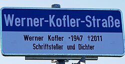 | Ehrenhalber gewidmetes Grab von Werner Kofler auf dem Wiener Zentralfriedhof , Gruppe 40, Nr. 70 | Eigenes Werk | Haeferl | Datei:Wiener Zentralfriedhof - Gruppe 40 - Werner Kofler - 1.jpg |