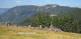 Die Wetterin bietet schöne Ausblicke auf die Hohe Veitsch (1.981 m), den Hochschwab (2.277 m) und die Schneealpe (1.903 m).