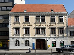 Das ehemalige Hotel Goldenes Lamm wurde 1760 nach dem großen Brand auf der Wieden errichtet und 1823 durch den Architekten Josef Klee aufgestockt. Es ist ein spätbarockes Vorstadthaus mit einer frühhistoristischen Fassade aus der Zeit um 1855. Am Gebäude befindet sich eine Gedenktafel für den tschechischen Komponisten Antonín Dvořák, der hier öfters wohnte. Bedeutend war das Hotel vor allem durch den vor dem Haus befindlichen Stellwagenstandplatz, von dem Stellwägen nach Hainburg an der Donau, Pottendorf, Traiskirchen, Mödling und Brunn am Gebirge abgingen. Heute befindet sich im Hotel das Institut für Stochastik und Wirtschaftsmathematik der TU Wien.