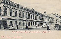| Das Wiedner Krankenhaus (auch: Bezirkskrankenhaus Wieden, Wiedner Spital), 1040 Wien (Ansichtskarte) | Wien Museum: https://sammlung.wienmuseum.at/objekt/1015246-4-favoritenstrasse-30-32-wiedner-krankenhaus-ansichtskarte/ | C. Ledermann jun. (publisher) | Datei:Wieden hospital (Vienna).jpg |