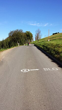 | Die Grenzland-Weinstraße in Ehrenhausen an der Weinstraße . Die Grenze zwischen Österreich und Slowenien verläuft in manchen Streckenabschnitten direkt im Straßenbereich (auf diesem Bild ist die Grenze mit weißen Punkten auf der Straßenoberfläche markiert). | Eigenes Werk | Gugganij | Datei:Grenzland-Weinstraße border 20141016 1.jpg | |