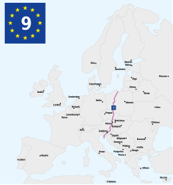 | EuroVelo Route 9 (as of May 2009) | File:EuroVelo map.jpg , http://www.eurovelo.org/routes/ and http://www.ecf.com/wp-content/uploads/2011/09/EuroVelo-The_European_cycle_route_network-May2009.pdf | European Cyclists’ Federation http://www.ecf.com/ | Datei:EuroVelo Route 9.svg | |