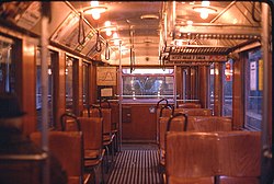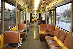 Mit der Kommunalisierung entfiel die Unterscheidung nach Wagenklassen, an Stelle der zweiten respektive dritten Klasse trat eine nicht näher bezeichnete Einheitsklasse analog zur Straßenbahn. De facto entsprach die Holzbestuhlung der neuen Wagen aber komfortmäßig der dritten Klasse bei der Eisenbahn, die sogenannte Polsterklasse entfiel hingegen komplett. Zudem waren bei der elektrischen Stadtbahn anfänglich nicht mehr alle Wagen beheizt, sondern nur noch die Triebwagen, nicht aber die Beiwagen.[16] Erst in späteren Jahren erhielten auch die Beiwagen je zwei Frischstromheizkörper.[36]