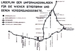 Für die Elektrifizierung hatte die Gemeinde Wien zuvor den notwendigen Sachkredit in Höhe von 185 Milliarden Österreichischen Kronen[11] respektive 18,5 Millionen Schilling[12] im Rahmen von Notstandsarbeiten bereitgestellt. Die bisherigen Verknüpfungen mit der Westbahn und der Franz-Josefs-Bahn konnten hierbei aus Kostengründen nicht mehr berücksichtigt werden. Jedoch fuhren beispielsweise im letzten Friedensjahr 1913 von den 41,2 Millionen Fahrgästen auf den innerstädtischen Strecken ohnehin nur 6,25 Millionen über Hütteldorf-Hacking und Heiligenstadt hinaus oder kamen von dort her.[4] Ebenso hatte die Gemeinde Wien kein Interesse an der vergleichsweise gering frequentierten Vorortelinie am Stadtrand, zumal diese auch weiterhin für den sogenannten Überleitungsverkehr zwischen den Hauptbahnen notwendig war.[13] Gleiches galt für die Verbindungsbahn Praterstern–Hauptzollamt–Meidling, die Verbindungsbahn Penzing–Meidling, die Donauländebahn und die Donauuferbahn. Sie lagen zwar ebenfalls noch im Stadtgebiet, gehörten aber zum sogenannten äußeren Netz der Dampfstadtbahn.