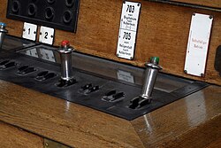 Mit der Elektrifizierung endete ferner die Beförderung von Aufgabegepäck in speziellen Gepäckabteilen, mit dem nicht mehr praktizierten Übergang auf die Lokalstrecken der Staatsbahn benötigten die elektrischen Stadtbahnzüge außerdem keine Toiletten mehr. Entsprechend der Konzeption als Straßenbahnwagen besaßen die neuen Triebwagen zur Abgabe von Warnsignalen nur die übliche fußbediente Warnglocke. Eine Druckluftpfeife war, trotz vorhandener Druckluft, nicht vorgesehen.[36] Auch das, bei der Dampfstadtbahn bereits vorhandene, Dreilicht-Spitzensignal entfiel zugunsten eines einfachen, mittig angeordneten, Scheinwerfers. Eine zusätzliche Lichtquelle ergab sich durch die beleuchtete Liniensignalanzeige auf dem Dach. Beim Zugschlusssignal war es ähnlich. Statt den bei der Dampfstadtbahn üblichen drei roten Laternen, besaß die elektrische Stadtbahn bis 1946/1947 nur eine rote Dachsignalscheibe. Danach wurde die rote Schlussscheibe wegen der aufwändigen Manipulation beim Wenden in Stockgleisen auf den Scheinwerfer aufgesteckt.[38]