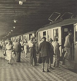Die Wiener Elektrische Stadtbahn,[6] abgekürzt WESt, W.E.St., Wr.-E.-St. oder W.E.ST., im Volksmund kurz Stadtbahn genannt,[7] war ein öffentliches Nahverkehrsmittel in der österreichischen Hauptstadt Wien, das unter dieser Bezeichnung von 1925 bis 1989 existierte. Das anfänglich noch als Eisenbahn klassifizierte System ging aus der 1898 eröffneten, von Otto Wagner gestalteten und mit Dampflokomotiven betriebenen ursprünglichen Wiener Stadtbahn hervor, die teilweise auch Vororte bediente.