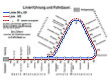 | Minimaler Radius: | auf freier Strecke 150 m, in Schleifen 22[4] m |
