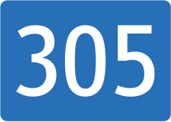 | Sign of Bundesstrasse in Austria | Straßenverkehrszeichenverordnung (StVZVO), BGBl. 1998 II 1205-1227, 1217. | EssensStrassen | Datei:B305-AT.svg | |