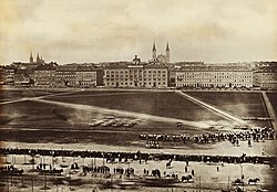 Als Standort stand ursprünglich ein Areal gegenüber dem im Zuge des Ringstraßenbaus angelegten Stadtpark, dem ersten kommunalen Park Wiens, zur Diskussion. Schließlich konzentrierten sich die Wünsche der Stadtverwaltung aber auf einen Teil des Josefstädter Glacis, einer vor der (nun demolierten) Stadtmauer gelegenen Bauverbotszone, die im 19. Jahrhundert als Paradeplatz diente und dem Kaiser 1870 nur nach Interventionen von Bürgermeister Cajetan Felder abgerungen werden konnte. Stadtverwaltung und k.k. Regierung stritten lang darüber, wer sich mit welchem Anteil an der Finanzierung des Ringstraßenprojekts beteiligen würde; die Frage des Bauplatzes für das Rathaus, mit dem das erstarkende Bürgertum sein Selbstbewusstsein auch gegenüber dem Kaiser demonstrieren wollte, nahm dabei einen prominenten Platz ein.