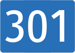 | Sign of Bundesstrasse 301 in Austria | Straßenverkehrszeichenverordnung (StVZVO), BGBl. 1998 II 1205-1227, 1217. | Mailtosap | Datei:B301-AT.svg | |