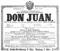 | Hofoper Wien, 25. Mai 1869, Theaterzettel zur Eröffnungsvorstellung. | Richard Specht: Das Wiener Operntheater, Verlag Paul Knepler, Wien 1919, S. 13. | unknown; irrelevant | Datei:Hofoper 1869-05-25 Don-Juan.jpg | |