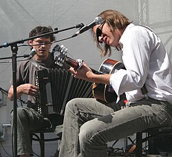 | Austrian musicians Ernst Molden and Walther Soyka (accordion) performing at Vienna's annual Stadtfest Note: Camera time is set to UTC, which is local time -2. | Eigenes Werk | User:W. | Datei:Ernst Molden, Walther Soyka 20090425 142.jpg | |