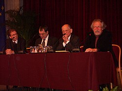 | Am Podium von links nach rechts: Claudius Stein, Thomas Macho , Otto F. Kernberg , Hubert Christian Ehalt , am 12. November 2008 in den Wiener Vorlesungen . | Eigenes Werk | Anton-kurt | Datei:Stein.Macho.Kernberg.Ehalt.ViennaA.JPG |