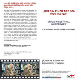 Im Jänner/Februar 2020 präsentierte das VWI gemeinsam mit dem Österreichischen Filmmuseum an sechs Sonntagnachmittagen das elfstündige Interview mit Simon Wiesenthal, das der Salzburger Historiker Albert Lichtblau im November 1997 für die Visual History Foundation führte.[29]