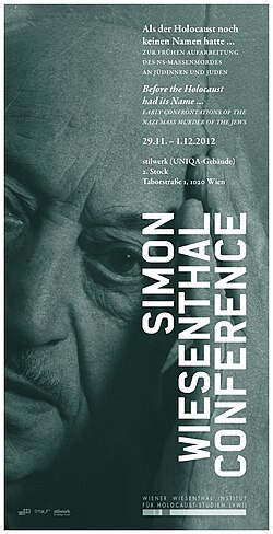 Weitere Veranstaltungen des VWI sind die inzwischen alljährlich am Ende eines Kalenderjahres stattfindenden Simon Wiesenthal Conferences. 2011 hatten sie mit Partituren der Erinnerung[20] die Aufarbeitung des Holocaust in der zeitgenössischen Musik zum Thema, 2012 folgte mit Als der Holocaust noch keinen Namen hatte die frühe Aufarbeitung des Holocaust zwischen 1944 und 1955. Im Dezember 2013 organisierte das Institut gemeinsam mit dem Washingtoner United States Holocaust Memorial Museum die Simon Wiesenthal Conference unter dem Titel Kollaboration und Mittäterschaft in Osteuropa im Zweiten Weltkrieg und im Holocaust im Wiener Palais Trautson.[21] Die Simon Wiesenthal Conference 2014 – in Zusammenarbeit mit dem Österreichischen Rundfunk (ORF) – widmete sich der Aufarbeitung des Holocaust im Fernsehen Ost- und Westeuropas bzw. der USA, wobei der 35.[22] Jahrestag der Ausstrahlung der TV-Serie Holocaust – Die Geschichte der Familie Weiss im ORF als unmittelbarer Anlass diente. Die Konferenz des Jahres 2015 hatte den Antisemitismus an Europas Peripherien[23], vor allem seinem Einfluss auf antisemitischen Tendenzen in Europas Zentren, zum Thema. Im Dezember 2017 widmete sich die jährliche Simon Wiesenthal Conference im Palais Epstein unter dem Titel (Un)Rühmliche Opfer? Die Paradigmen der europäischen Gedächtnispolitik auf dem Prüfstand den unterschiedlichen Opfernarrativen in den europäischen Gesellschaften nach 1945.