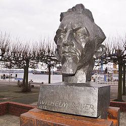 | Sculpture for Wilhelm Bauer 1822-1875, German inventor, in Kiel, Germany Dieses Bild zeigt ein Baudenkmal. Es ist Teil der Denkmalliste von Kiel. | Eigenes Werk | Arne List | Datei:Wilhelm Bauer sculpture Kiel.jpg |