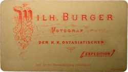 - ↑ Willfried Baatz, Geschichte der Fotografie - Schnellkurs, mit einem Vorwort von Fritz Gruber, DuMont-Verlag, 4., aktualisierte Auflage 2004, ISBN 3-8321-3616-9, S. 54/55; ebenso: Comune die Trieste, Fototeca dei Civici Musei di Storia e Arte, Wilhelm Burger [1844-1920], https://fototecatrieste.it/fotografi-in-fototeca/wilhelm-burger-1844-1920/ und Luke Gartlan, Photography and the Imperial Austrian Expedition in Nagasaki (1869-70), University of St Andrews, S. 72, https://nagasaki-u.repo.nii.ac.jp/record/15473/files/OldPhotoStudy3_72.pdf