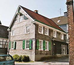 | Das Geburtshaus von Wilhelm Conrad Röntgen in Remscheid-Lennep. Seit 1980 dem Röntgen-Museum angegliedert. Es dient als Studiengebäude. Dort ist auch die Bibliothek des Museums untergebracht. Dazu gehört seit 1987 die Gesamtbibliothek der deutschen Röntgengesellschaft. | Eigenes Werk | Markus Schweiss | Datei:House-of birth of Wilhelm Conrad Roentgen.jpg | |