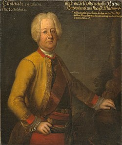 | Wilhelm Dietrich von Buddenbrock (* 15. März 1672 in Tilsemischken bei Ragnit in Ostpreußen; † 28. März 1757 in Breslau), preußischer Feldmarschall | Deutsches Historisches Museum , Negativnr: E07/956,07/767 - GOS-Nr. 95001248 | unbekannter Künstler des 18. Jahrhunderts | Datei:WP Wilhelm Dietrich von Buddenbrock.jpg |
