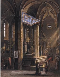| Interiér Staronové synagogy (1838) | www.holocaust.cz | Vilém Kandler (1816-1896) | Datei:Vilem Kandler - interier Staronove synagogy (1838).jpg |