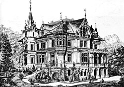 - ↑ Bauumfang 1882: Villa, zwei Wirtschaftsgebäude, Glashaus, Kegelbahn, Salettl, Gartenhaus, Wasserbecken, Wasserschloss mit Grotte.