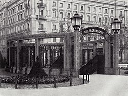 Zum markantesten Neubau am Wilhelmplatz im 19. Jahrhundert wurde jedoch das 1873–1875 nach Plänen der Architekten Hude & Hennicke errichtete Grandhotel Kaiserhof. Um Platz für den riesigen Komplex zu schaffen, hatte die „Berliner Hotelgesellschaft“ seit 1872 elf Grundstücke an Wilhelmplatz (Nr. 3 und 5), Zietenplatz (Nr. 1–3 und 5) bzw. an der Mohrenstraße (Nr. 4) und der Mauerstraße (Nr. 56–59) und damit ein ganzes Häuserquartier erworben und die bestehenden Gebäude abreißen lassen. An der Südostseite des Wilhelmplatzes brach man dabei die bisher geschlossene Randbebauung auf und schuf eine neue Verbindung zwischen Mauer- und Wilhelmstraße unter dem Namen Kaiserhofstraße. Durch die Freistellung von angrenzenden Bauten wurde der „Kaiserhof“ noch stärker aus seiner Umgebung herausgehoben.[38]