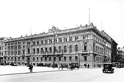 Im Kontrast zu diesen strukturellen Veränderungen hatte der Bauboom am Wilhelmplatz schon seit Beginn des Ersten Weltkriegs nachgelassen. Die Grundstücke befanden sich nun fast alle in staatlichem Besitz oder waren in den Jahrzehnten zuvor mit stattlichen neuen Bauten besetzt worden. Zwar entstanden ab 1919 auch neue Behörden und Ministerien, diese okkupierten aber die nach außen oft unveränderten Gebäude der Kaiserzeit oder mussten wegen zunehmender Raumnot in umliegenden Straßenzügen untergebracht werden.[44]