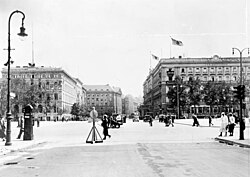 | Wilhelmplatz and Wilhelmstraße (left) in Berlin. | Scan from book: Laurenz Demps: Berlin-Wilhelmstraße, Berlin 1994, p. 162 / Landesarchiv Berlin, F Rep. 290 Nr. II3373 | Titzenthaler, Waldemar | Datei:Berlin, Wilhelmplatz, um 1901.jpg | |