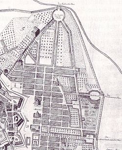 Zunächst sah man ein traditionelles, kleinteiliges Rastersystem für die neu anzulegenden Straßen vor. Ab 1732 dominierten in der Planung jedoch drei zentrale Nord-Süd-Achsen, die am Südende strahlenförmig in einem kreisrunden Platz zusammenliefen, dem Rondell (heute: Mehringplatz). Sie erhielten später die Bezeichnungen Wilhelmstraße, Friedrichstraße und Lindenstraße. Ein königliches Patent vom 29. Juli 1734 erwähnt unter den Bauvorhaben auch die Anlage eines größeren Platzes an der Wilhelmstraße.[2]