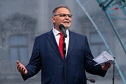 | Der Gewerkschaftler, Starkstrommonteur und Vorsitzender des „Mauthausen Komitee Österreichs“ Willi Mernyi bei der Eröffnungsrede des „Fest der Freude“ am 8. Mai 2023 auf dem Heldenplatz im 1. Wiener Gemeindebezirk Innere Stadt. | Eigenes Werk | C.Stadler/Bwag | Datei:Willi Mernyi - Fest der Freude am 8.5.2023 in Wien.JPG |
