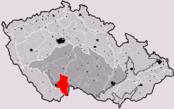 | Poloha geomorfologického celku Třeboňská pánev v rámci České republiky. Hercynský systém Hercynská pohoří I Česká vysočina I 2 (II) Česko-moravská subprovincie I 2 B (IIB) Jihočeské pánve I 2 B-2 (IIB-2) Třeboňská pánev | Eigenes Werk , based on File:Czech_Republic_geomorphological_division_map_blank.png | User:Miaow Miaow | Datei:Trebonska panev CZ I2B-2.png | |