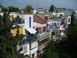 | Wohnhausanlage Wohnen mit Kindern in Wien - Floridsdorf , Bezirksteil Jedlesee , Haus Wienergasse, hofseitige Fassade | Eigenes Werk | Anton-kurt | Datei:2008.08.14.WohnenMitKindern.WienerGasse6.Hoffassade.ViennaC.JPG | |